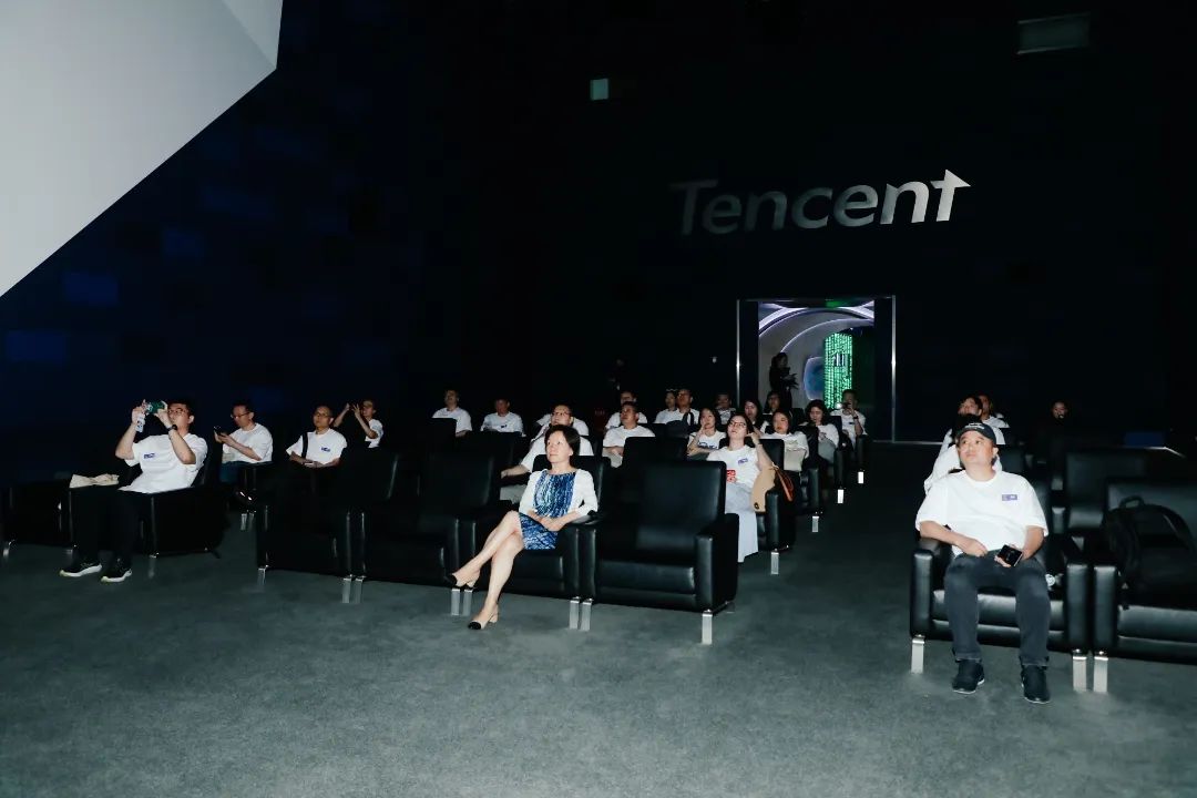 走进腾讯集团总部大厦,参访团参观腾讯企业展厅、数据大屏幕和各产品线展示,并领略腾讯集团用户至上、产品第一,科技创新、产业赋能的可持续发展战略以及云上数智实践的最新成果。