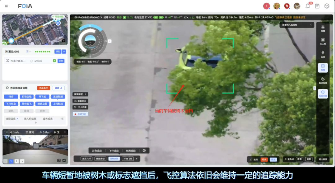 选择车辆等高速移动的目标时,无人机根据目标移动速度和方向,动态调整飞行参数及姿态,确保目标持续处于视野中。