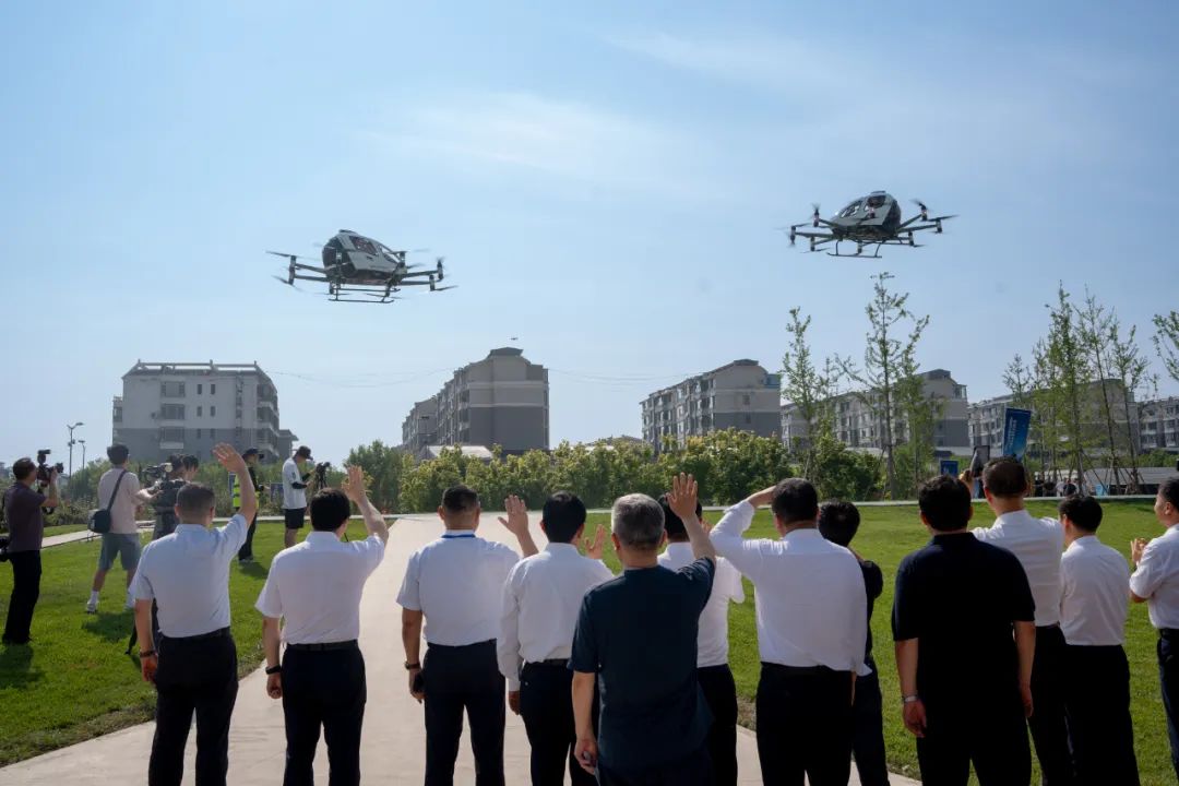 在太原市稻田公园举行的首飞仪式现场,2架EH216-S同时载人起飞,首批4名乘客以空中视角,俯瞰千亩良田泛起层层稻浪。太原西山生态文化旅游示范区管委会副书记冀晓军,副主任李润敖等嘉宾在活动当天乘坐体验飞行。此次飞行为无人驾驶载人航空器在太原开展空中观光游览服务营造良好的先行示范效应,EH216-S在飞行中展示出的无人驾驶、集群调度、安全平稳等优势,也获得在场嘉宾及乘客的赞叹和喝彩。