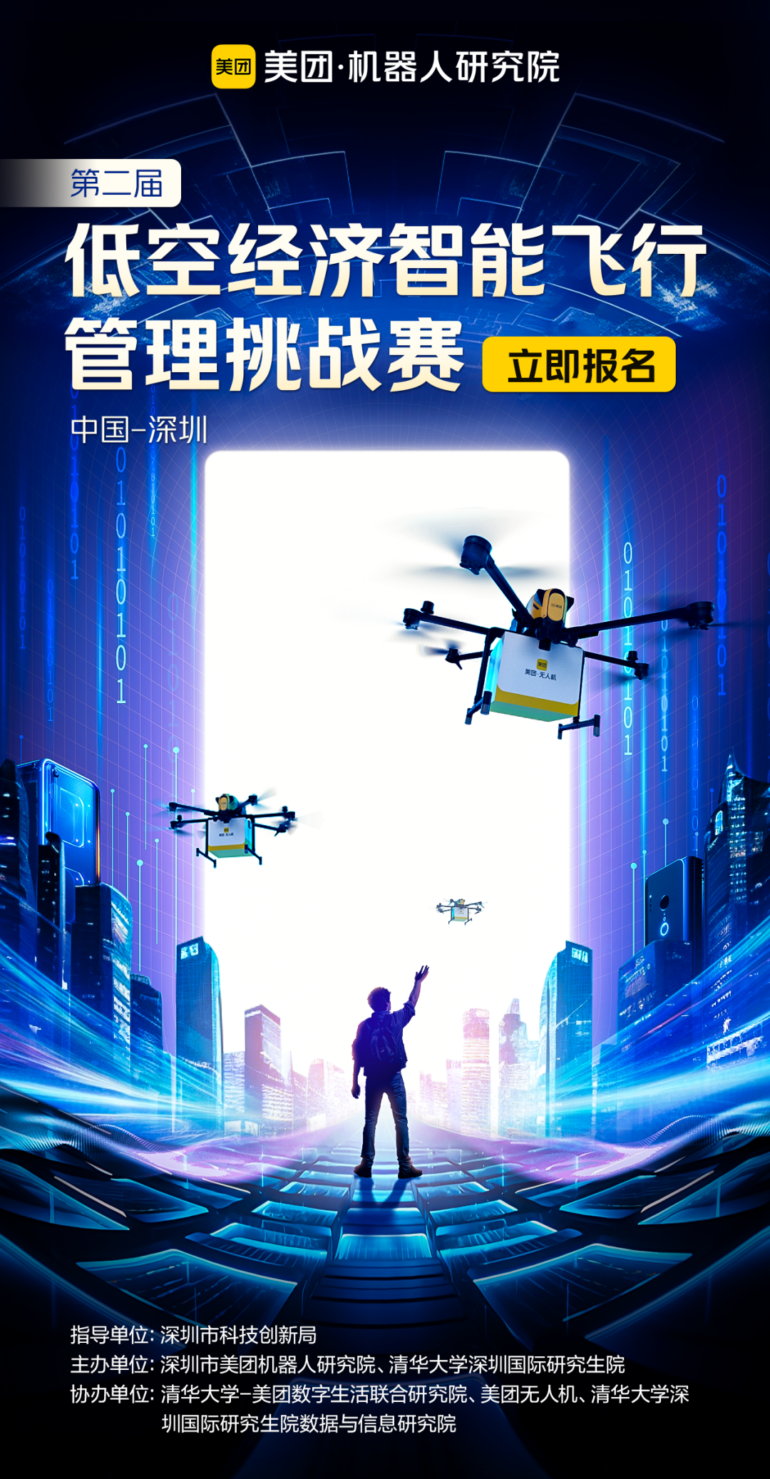 在深圳市科技创新局的指导下,深圳市美团机器人研究院与清华大学深圳国际研究生院联合举办第二届「低空经济智能飞行管理挑战赛」。