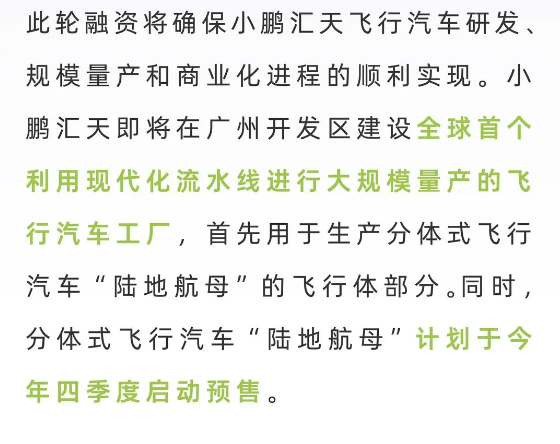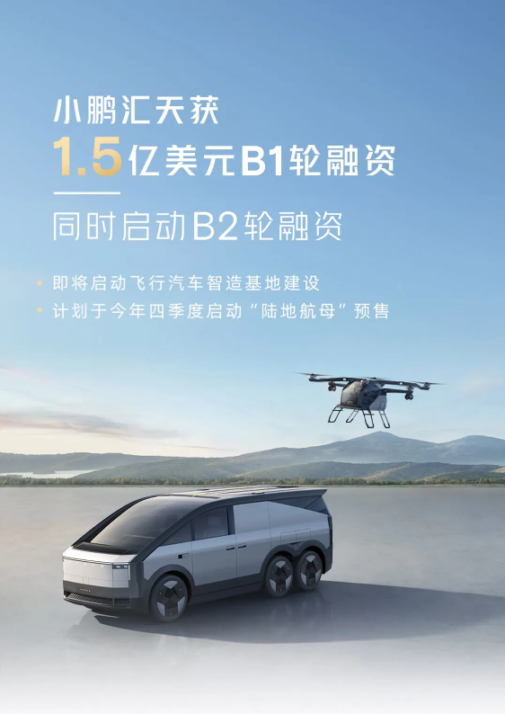 喜讯!小鹏汇天获1.5亿美元B1轮融资,同时启动B2轮融资