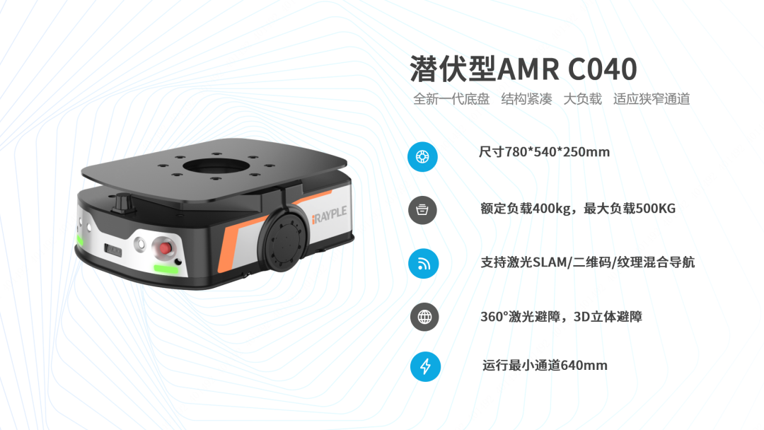 在物流自动化行业的创新与卓越追求中,华睿科技再次实现了重要突破,隆重推出全新潜伏型AMR——潜伏 C040。该AMR配备全新一代底盘,结构紧凑、载重大、适应狭窄通道运行,为复杂环境的行业解决方案搭建提供了更多可能性!