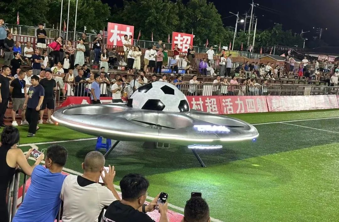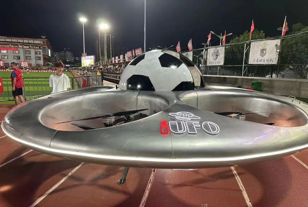 此次载人飞碟在碟形流线外壳的基础上巧妙融入足球座舱元素,不仅完美契合了村超的主题,更洋溢着浓厚的科幻气息。人文情怀与尖端科技的完美交融,为村超盛会添上了浓墨重彩的一笔,让人叹为观止。
