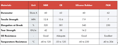 密封件可以由各种材料制成,例如橡胶或合成聚合物,每种材料都具有独特的性能和用途。根据特定的应用要求选择合适的密封件,例如在较高温度下使用硅橡胶,将确保密封性能的一致性,从而延长轴承的使用寿命(表 1)。
