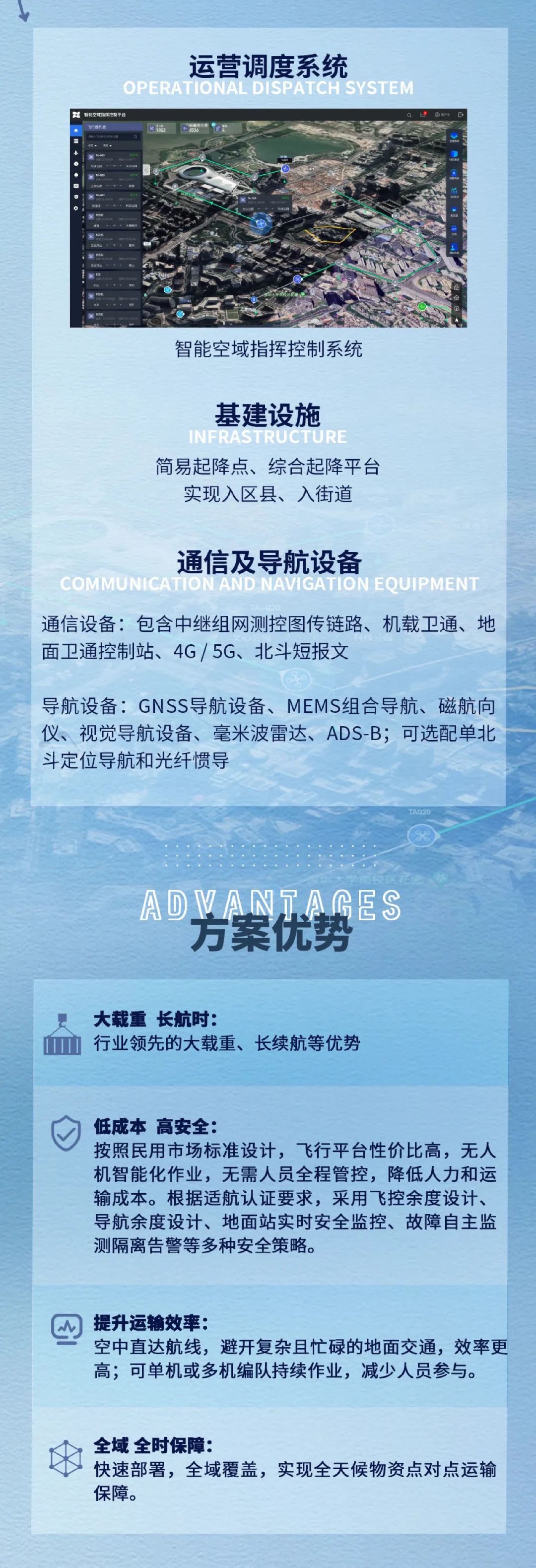 案例1:高海拔地区的精准速递 在我国西部的边陲哨所与偏远村落,这两款运投无人机系统解决方案展现出了超凡应用能力。全新研发的T1200 以6500米的升限与500公斤的最大载荷,突破地理障碍,从最近的补给点、附近县域、通行公路或机场腾空而起,跨越高耸的雪山,将新鲜食材、医疗用品等生活必需品及关键生产物资精准送达目的地。 无论是夏日雨水肆虐导致的道路损毁,还是冬日严寒下道路的冰封雪覆,它们都能稳健前行,确保当地居民与驻守人员的基本生活与生产需求得到满足。 案例2:海岛及海上平台的补给线 东部沿海地区,台风季的狂风、骤雨、巨浪对海岛与海上作业平台构成严峻挑战,给海岛礁盘上的哨所与海上作业的渔民面临物资补给的巨大困难。 由于小型无人机抗风能力较弱,难以在复杂气象环境下起降作业,无法胜任物资运输补给工作。TD550与T1200无人机凭借其卓越的抗风性能与稳定性,成为孤岛守望者与海上渔民的坚强后盾。 它们穿梭于波涛之间,将生活必需品、燃料储备及渔业生产工具等关键物资迅速送达,确保了海防安全与渔民的生产生活连续性,成为极端天气下不可或缺的物流通道。 场景三 / 应急救援与物资运投 面对泥石流、地震引发的地面交通瘫痪,洪水、大雪围困的严峻局势,传统地面救援手段因交通中断而受限,同时移动通信与电力供应亦面临中断风险。加之恶劣多变的天气条件,如持续降雨、强风、泥石流频发及大雪封路,进一步加剧了救援难度。 紧急时刻,联合飞机运投型无人直升机以其独特的空中点对点运输能力,成为突破困境的关键。它们能够无视地面障碍,迅速穿越复杂环境,直接将急需的日常生活物资、医疗援助、救灾装备等精准送达受困区域,有效保障了受灾民众的基本生存需求与紧急医疗救治,极大提升了救援效率与响应速度,成为公共应急体系中的明星方案。 案例1:灾区救援设备和物资的精准运投 大载重无人机TD550 和 T1200 凭借其卓越的环境适应性和强大的飞行能力,在恶劣天气下依然稳定作业,成功克服地面无合适降落场地的难题,可将救援物资及时送到被困人员手上。在2023年京津冀地区特别是北京门头沟区遭遇的严重洪涝灾害中,TD550利用其卓越的悬停技术,在空中精确投放数百公斤的饮用水与食物,直达受困村庄,为受灾群众送去了生命的希望,展现了无人机在极端条件下的非凡救援能力。 案例2:紧急医疗转运与空中生命通道 针对偏远或重灾区伤员及危重病人的紧急救治需求,T1200无人机化身为“空中救护车”,不仅装备了双光吊舱、通讯设备及照明工具,确保与被困人员的有效沟通;还能通过创新的信息传递方式,如对讲装置、录音留言、书写纸条等,精准收集救援需求,为外部救援团队提供实时信息支持。特别是T1200,其舱内集成了全套医疗急救设备,包括担架、吸氧机、输液系统及生命体征监测仪,并可直接搭载医护人员,实现空中紧急医疗救护与转运,为病患争取到宝贵的救治时间,在地震、火灾等突发事件中将发挥不可替代的作用。 场景四 / 电力设备运投 在电力设备投送领域,无人机技术正展现出前所未有的应用潜力,特别是在复杂地形,如山区、高原地区,输电线路构建与发电场建设所需的塔材、沙石水泥、光伏面板等物资的运投,输电线路故障情况下维修材料和检修工具的运输,无人机已成为关键物资运输的革新力量。 案例1:电力基建运输 2024年3月,联合飞机大载重无人机TD550成功参与浙江省电力运投项目,于安吉县崎岖山区每日执行三架次飞行任务,高效运输数百公斤重的塔材设备至山顶,实现精准空投,不仅破解了地形限制下的运输难题,还极大地降低了人员安全风险,显著提升了运输作业的整体效率。 案例2:电力应急运输 面对南方地区特有的冻雨灾害挑战,TD550无人机更是展现出其多功能性,不仅胜任日常线路巡检任务,及时发现并报告输电线路异常,还在灾害应急响应中扮演了关键角色。它能够快速吊运维修所需工具和零部件至维修人员手中,甚至包括电动绞车等重型设备,有效弥补了地面交通受阻时维修效率低下的困境,确保了电网的稳定运行与快速恢复。 针对输电线路突发故障情况,无人机不仅负责迅速运输维修材料和检修工具,更在缩短应急响应时间、确保维修效率方面发挥了重要作用。这一系列创新应用,标志着无人机技术在电力设备运维领域的深度融合与高效实践,未来,联合飞机研发的更大载重、更长航时、更高速度的1.2吨级无人直升机将为电力运投场景贡献更大价值。 场景五 / 野外勘探运输 在野外勘探与科考运输领域,无人机技术正逐步成为不可或缺的解决方案。面对地形复杂多变的山区及高海拔地区,传统运输方式在车辆难以触及的区域显得力不从心,尤其是重型设备部件的搬运,无论是人工背负还是多人协作,均难以在地势险峻或植被茂密的自然环境中高效通行。 自2022年起,联合飞机 TD220与TD550以其载重能力大、可垂直起降和长时间悬停,并具有较强的抗风能力和防雨能力,能够在较为复杂的气象环境下正常飞行等独特的空中优势,实现了设备部件的精准点对点投送,不仅极大地提升了运输效率,还确保了仪器设备在运输过程中的安全无损,相继在西部地区石油勘探项目中大显身手。 在应对道路不通、地形复杂的挑战、恶劣气候环境条件时,TD550 展现出卓越的环境适应