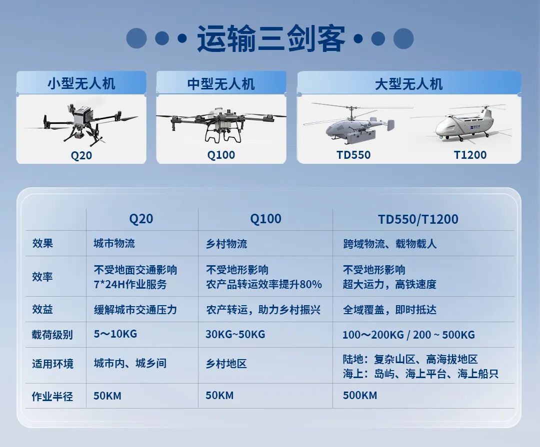 在探索未来空间物流的征途中,联合飞机运输“三剑客”凭借卓越的创新能力与市场敏锐度,成为低空物流领域的领航者。随着技术的不断迭代与应用的广泛渗透,“三剑客”将在更多元化的场景中大放光彩,为低空物流乃至整个行业注入强劲动力。