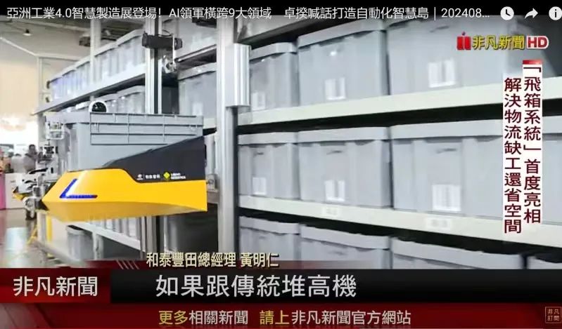 台湾媒体非凡新闻也对飞箱系统做了特别报道,盛赞飞箱取代了原本厚重又浪费走道空间的堆高机,可以减少50%的通道使用,节省了更多空间。飞箱快速的拣货搬运让作业人员无需移动,甚至坐着也能完成作业,实现储存、搬运和拣选一体化。不仅缓解了现在台湾物流缺工严重的难题,也改善了员工的工作环境和工作体验。
