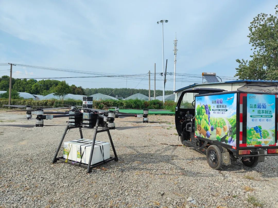 正值葡萄上市时节,顺丰在安徽开通首条运输特色经济产品的大圩无人机航线。