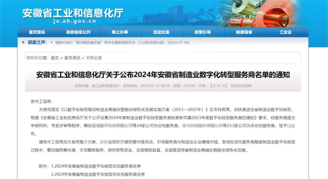 2024年安徽省制造业数字化转型服务商名单的通知