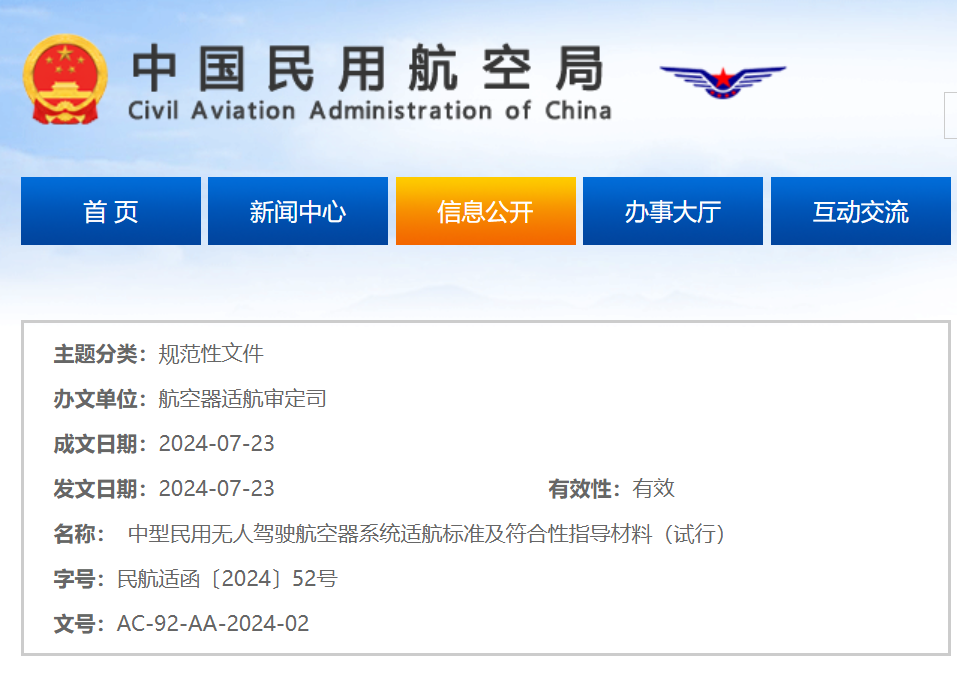 为了加强对无人驾驶航空器系统的管理,确保飞行安全,2023年5月31日,国务院与中央军委联合发布了《无人驾驶航空器飞行管理暂行条例》,明确了中型、大型民用无人驾驶航空器系统应纳入适航管理。随后,2024年2月5日,民航局出台了《民用无人驾驶航空器系统适航安全评定指南》,该指南为无人机产品的设计、制造、测试等环节设定了明确的安全标准。这一系列政策的出台,旨在通过严格的适航审定程序,确保无人机产品在实际应用中的安全性和可靠性。近期,2024年7月23日,中国民用航空局发布了《中型民用无人驾驶航空器系统适航标准及符合性指导材料(试行)》(以下简称《适航标准》)。这项政策的出台对于推动中国民用无人机行业的健康发展具有重要意义。《适航标准》的发布,首次为中型民用无人驾驶航空器系统确立了统一的适航标准。这意味着无人机制造商在设计、生产过程中有了明确的参照依据,有助于提升产品的安全性和可靠性。