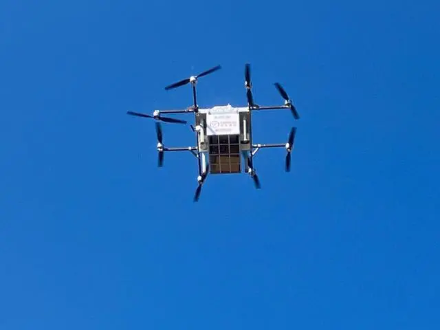 启动仪式上,丰翼无人机现场执飞面向高科技企业的无人机配送场景。
