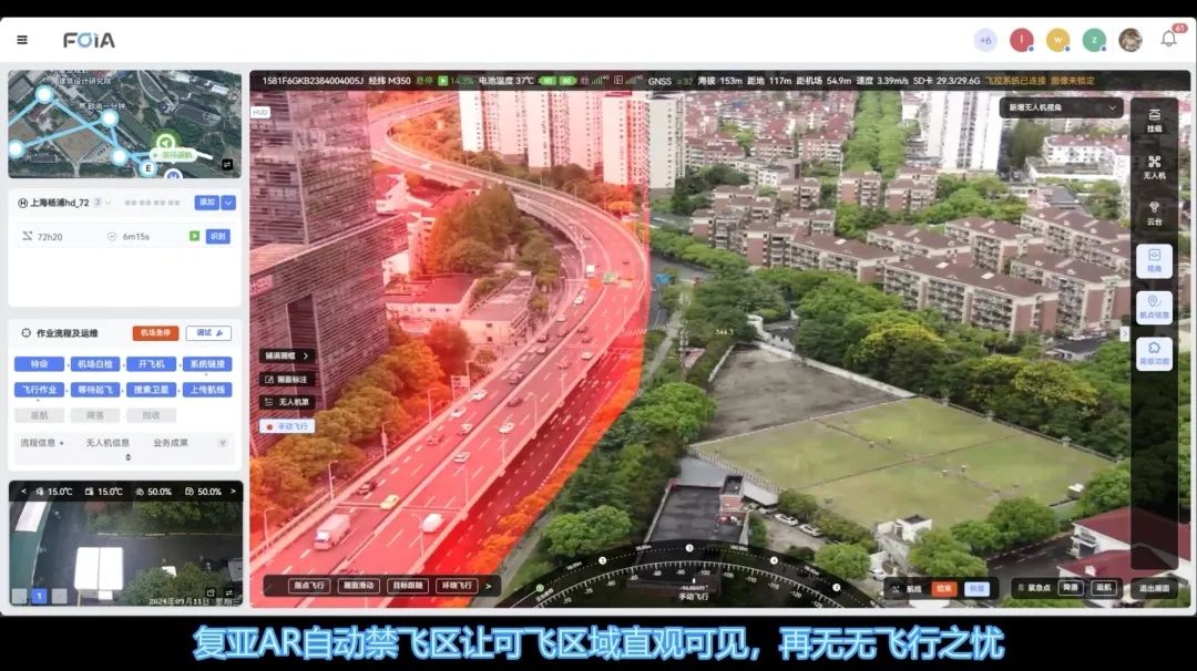面对复杂的城市环境,复亚智能无人机管理平台的AR自动禁飞区功能可以让用户快速识别周围的禁飞区,确保飞行合规。在城市巡逻、应急救援和基础设施巡检等场景下,该功能的实时可视化和自动安全防护机制让操作人员能够专注于巡检任务,无需担心安全问题。