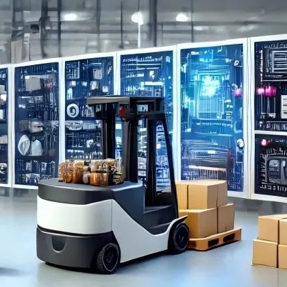 托盘搬运机器人和高位叉车AGV在仓库中实现高效的货物存储与搬运,优化物流运作。