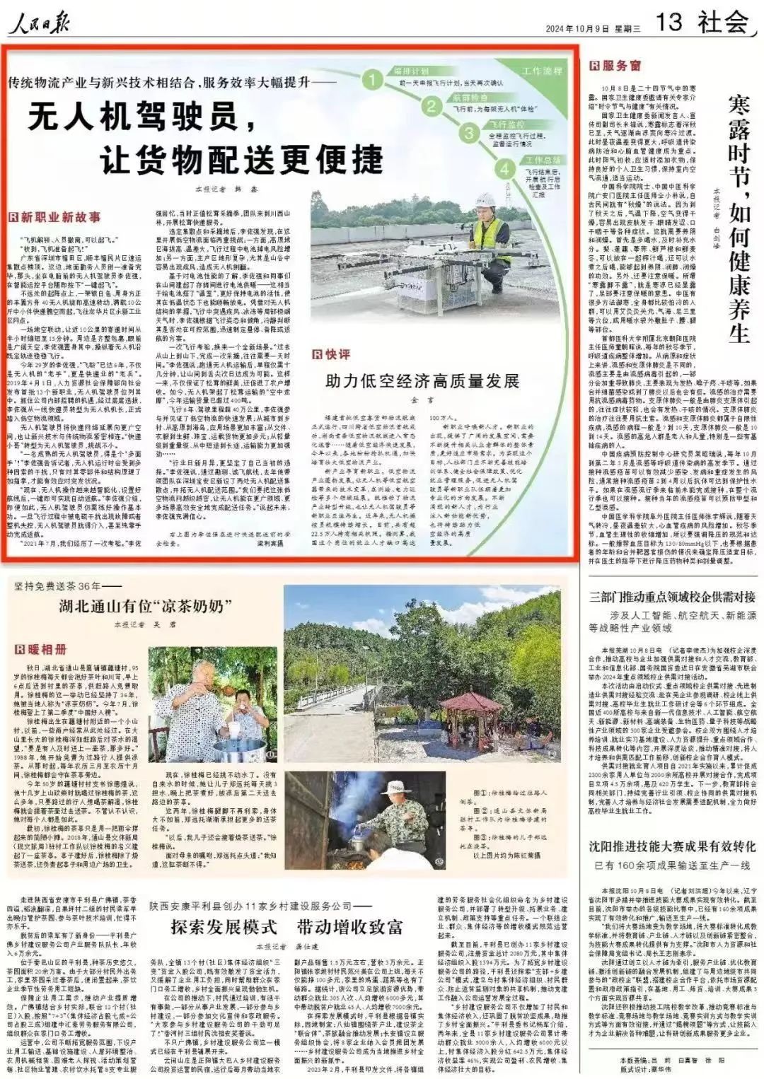 10月9日,《人民日报》发文对丰翼无人机驾驶员李佐强进行了专题报道。同时发布评论指出,不断涌现的新人才,为行业注入新动能新优势,也将持续助力低空经济的高质量发展。
