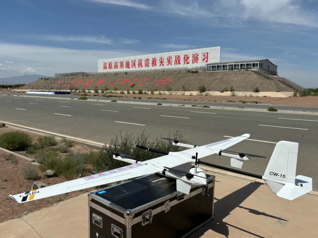 2024甘肃省应急测绘保障演练现场,CW-15搭载五镜头专业航摄相机,完成1.5平方公里三维建模,助力提升应急测绘保障水平,提高对突发事件的快速应对和现场处置能力。