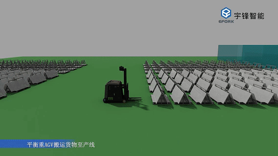 物流搬运场景中,涉及重载堆高、产线对接等作业场景,以平衡重AGV为主要硬件设备有效解决实际搬运的需求痛点,实现堆垛、存储、搬运、配送等多流程、多场景下的全天候作业场景。