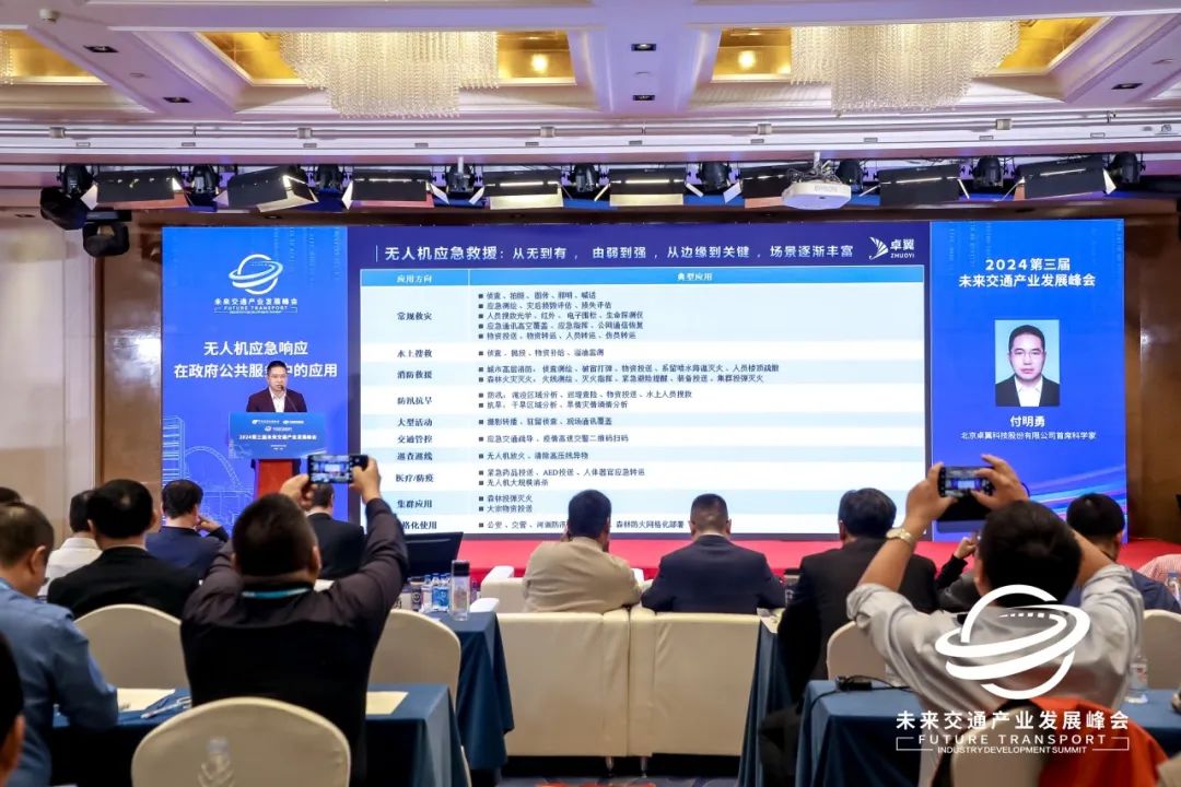 12日上午,卓翼智能首席行业科学家付明勇先生受邀在峰会低空经济产业发展论坛做题为《无人机应急响应在政府公共服务中的应用》的分享报告。