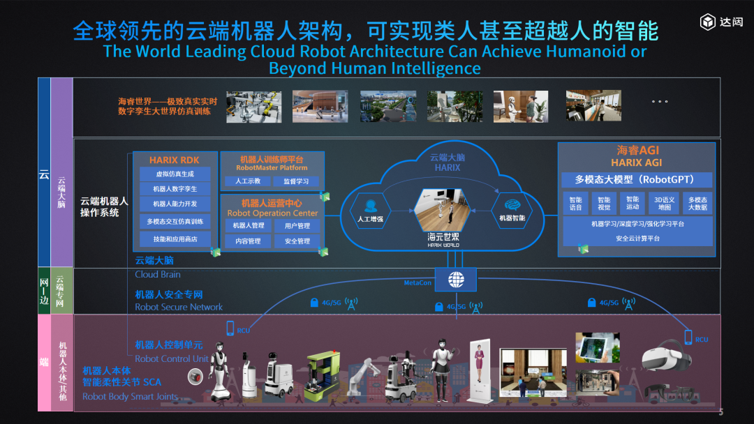 黄晓庆还透露,达闼的机器人操作系统“海睿”采用了元宇宙技术,通过数字孪生的云端大脑对物理世界进行建模,并用游戏引擎驱动数字机器人的模型,然后将其同步至机器人的身体,从而产生具身通用智能。这种创新技术使机器人能够更智能、更灵活地应对各种复杂环境和任务。
