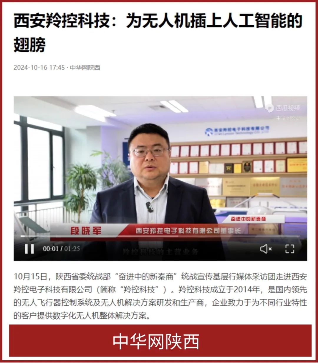 为了解西安低空经济发展状况,聆听无人机行业中蓄势起飞的秦商故事,近日,由国际在线、中华网、中国网、中国城市报、中国新闻社、中国经济时报、西部网、各界导报、陕西日报群众新闻网等10家媒体组成的省委统战部“奋进中的新秦商”统战宣传基层行媒体采访团来到羚控科技,专访了羚控科技董事长段晓军。