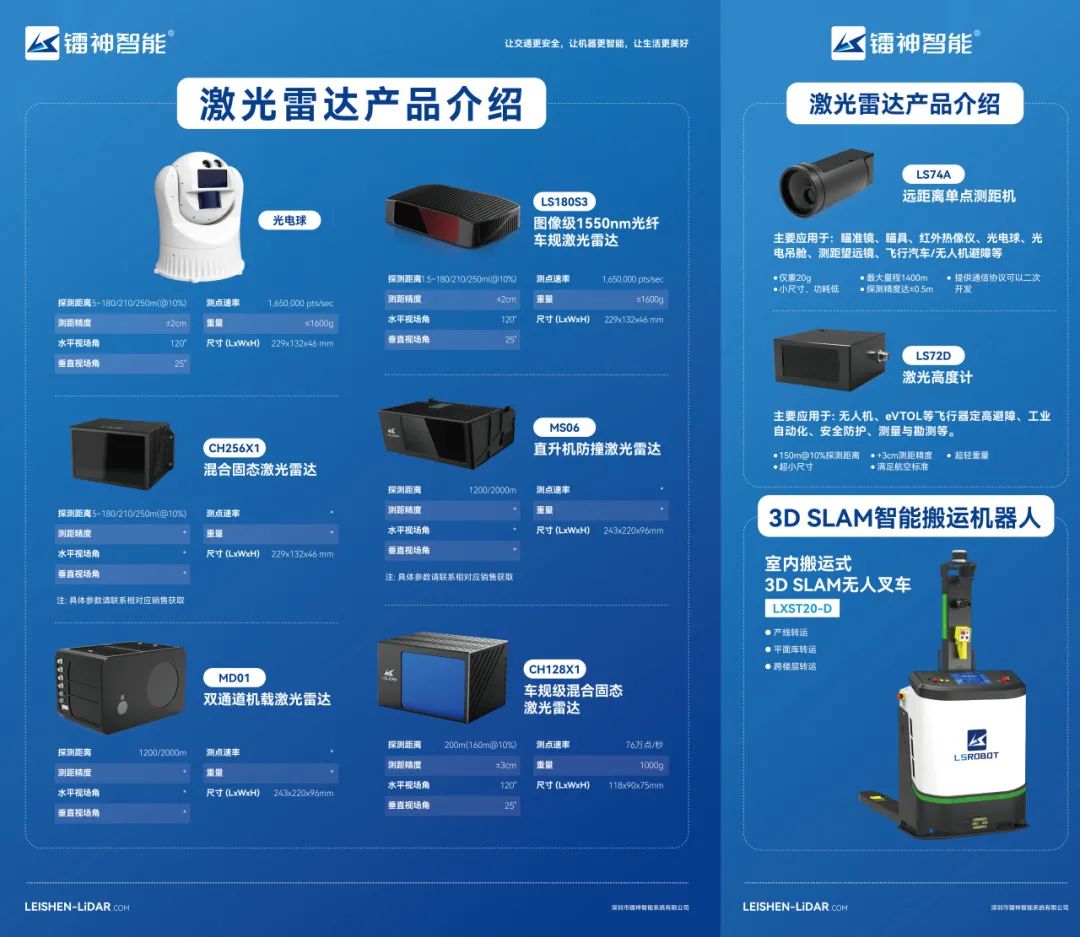 镭神智能展位号:12号馆H12S13 在无人系统以及安防解决方案方面,公司带来的直升机/无人机等飞行器防撞系统、无人机实时建模系统、无人车自动驾驶、智慧船舶、边海防线安防系统等海陆空天一体化解决方案,不仅展现了其在无人系统领域的深度布局,更为构建安全、智能的未来社会提供了有力支撑。 作为激光雷达领域的佼佼者,镭神智能此次参展不仅展示了其在技术上的深厚积累,更彰显了推动国产激光雷达技术自主可控的坚定决心。公司带来的多款激光雷达产品,无论是超远距离激光成像激光雷达MS06(测距达2000米)和MS07(定制距离可达4-6公里),还是航空级激光高度计、红外热成像及瞄准镜远距离激光测距机LS74A,均体现了镭神智能在远距离探测与定位技术上的全球领先优势。 此外,镭神智能还展示了挂载无人机应用的红绿双波段水下测绘激光雷达,以及专为水下机器人设计的绿光成像激光雷达,这两款产品不仅拓宽了激光雷达的应用领域,更为水下探测与测绘提供了高效、精准的技术支持。同时,公司展出的低空无人机探测光电系统,以及合作伙伴深圳市天陆海导航设备技术有限责任公司的百分之百国产化光纤惯导技术,进一步展示了其在无人机探测与导航定位技术上的创新能力。 镭神智能的展品不仅技术领先,而且应用场景广泛,充分体现了中国激光雷达技术的快速发展与崛起。通过此次展会,镭神智能不仅展示了自身的实力与风采,更为推动国产激光雷达技术的国际化进程作出了积极贡献。 第十五届中国国际航空航天博览会12号馆H12S13,期待您的到来!