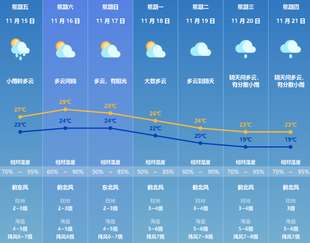 温馨提示:全市森林火险橙色预警信号正在生效,请注意居家用火安全;18日起海面风力加大,请注意做好防风措施。