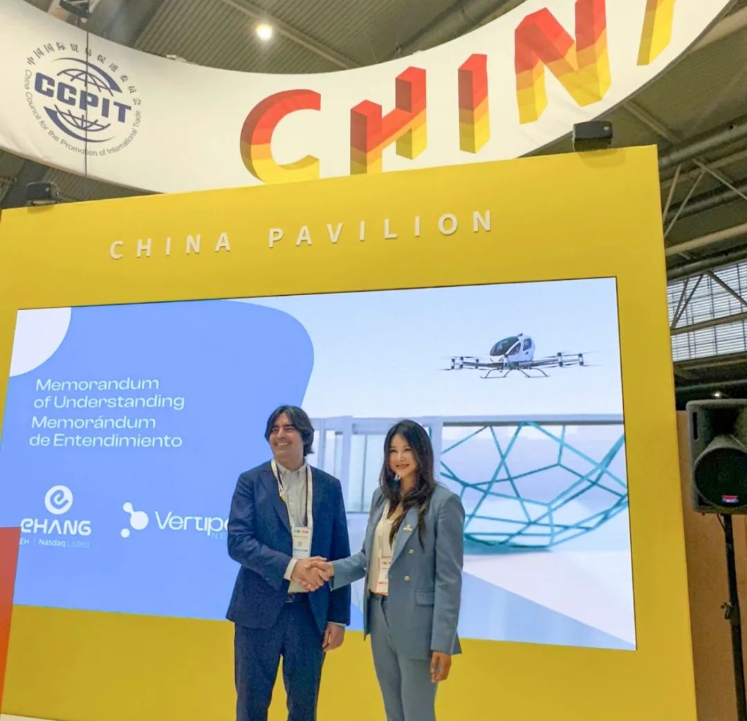大会期间,亿航智能与欧洲垂直起降基础设施企业Vertiports Network 正式签订合作备忘录。Vertiports Network是一家依托由欧盟网络安全局(ENISA)认证的独家操作系统(VNOS),专为客户提供模块化的UAM物理和数字基础设施(包括UAM票务和eVTOL航班运营管理服务)的公司。此次合作,亿航智能EH216-S将融入其垂直网络生态系统,携手促进和推动欧洲城市空中交通和低空经济发展。