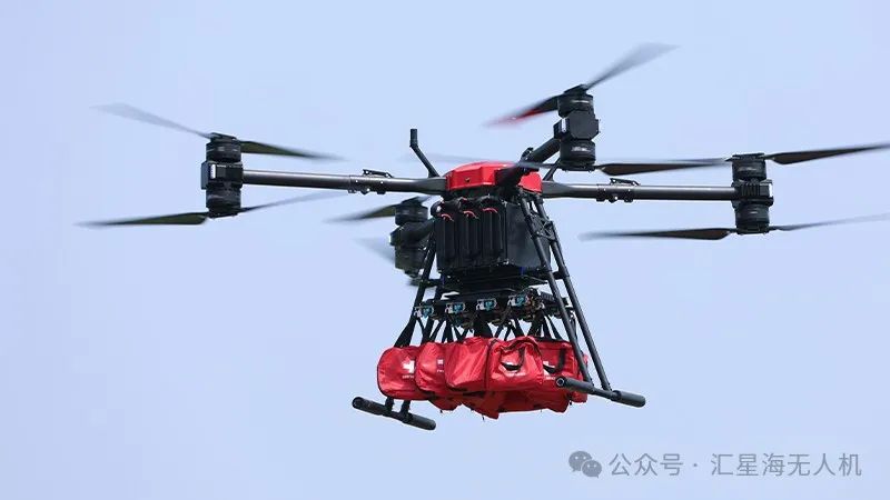 多旋翼大载重无人机可以不受地形因素的限制,对人力难以到达的地震灾后地区进行物资配送无人机参与应急救灾物资运输及投递。