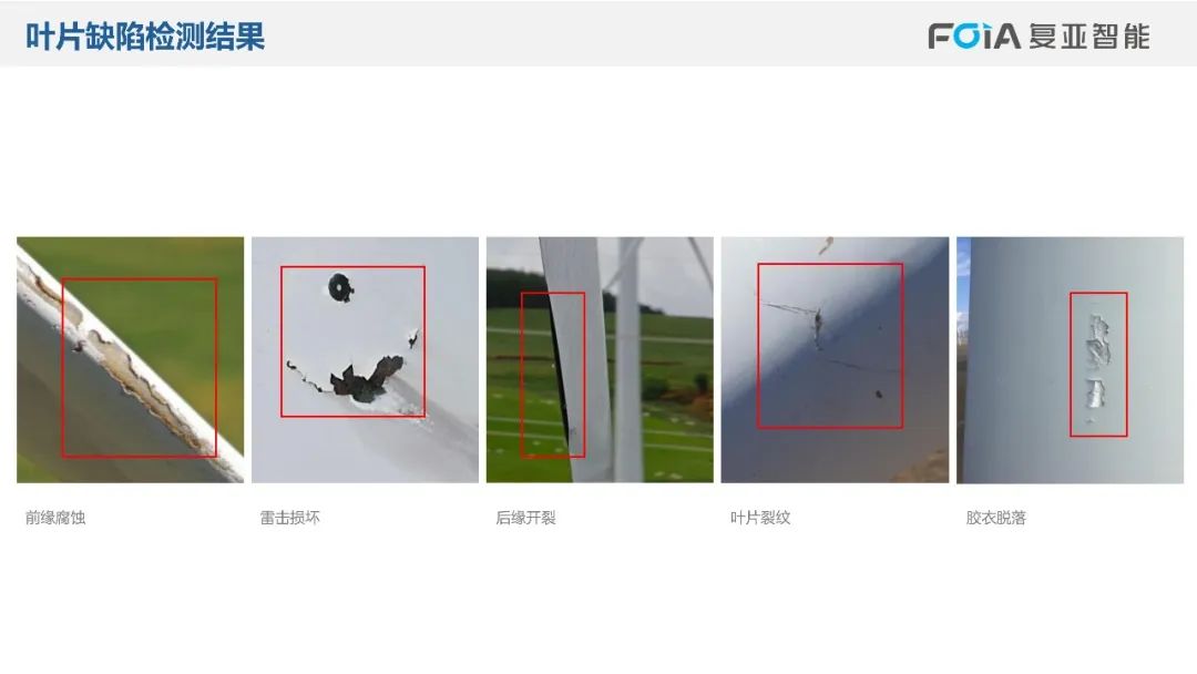 在数据处理方面,复亚智能依托先进的无人机AI识别算法实现了巡检数据的智能分析。无人机采集的影像被实时传输至数据管理平台,通过算力模块和云端服务器对叶片裂纹、前缘腐蚀、后缘开裂、胶衣脱落等缺陷进行自动识别。系统不仅能准确标注缺陷位置,还能测量缺陷的尺寸,并将缺陷按照类型和严重程度分类,快速生成完整的诊断报告。