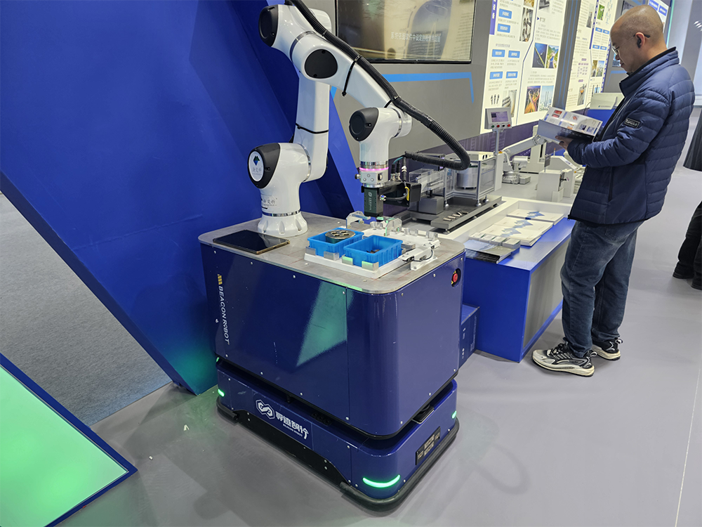 作为智能物流与交通装备领域的先锋企业,寻迹智行受邀参加本次博览会,并携带重磅推出的协作式机械手臂AMR搬运机器人亮相现场。
