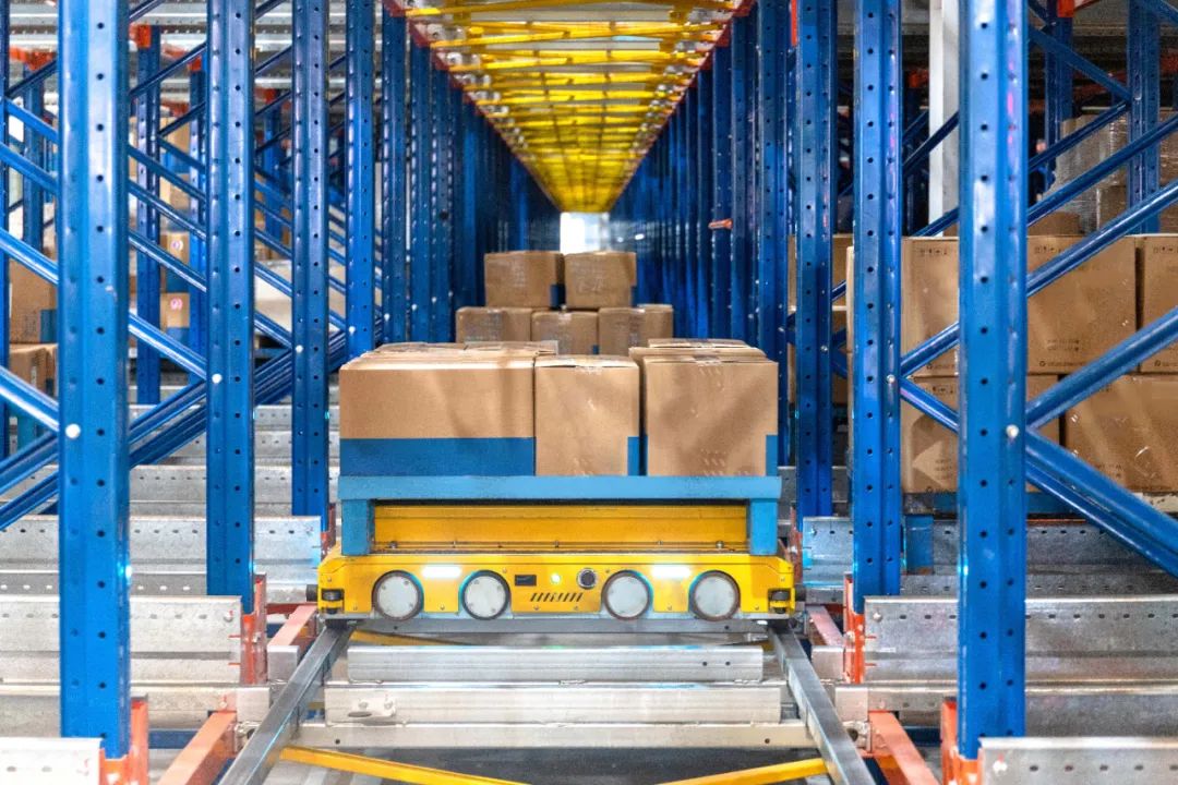 原来3层地堆已是堆垛极限,现在四向车方案上线后,货架的层数轻松扩展至5层,以往人工叉车的加宽通道也被极窄的四向车巷道所取代,带来相同面积下单位存储量超50%的提升。