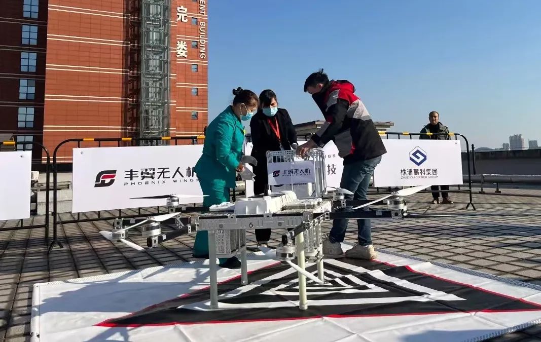 12月16日15时许,株洲市中心医院医技楼的顶楼平台,丰翼无人机从空中缓缓降落送达检测样本,标志着湖南省首条“无人机医联体专线”正式开通并投入常态化运营。