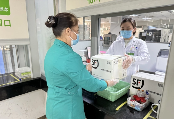 约半个小时后,无人机降落在株洲市中心医院医技楼天台上降落。顺丰小哥当即取出医药箱,交给在场的工作人员送往医院检验中心检测。化验结果出来后,患者即可在三门镇卫生院进行下一步就诊、用药,免去来回奔波就医的疲累。