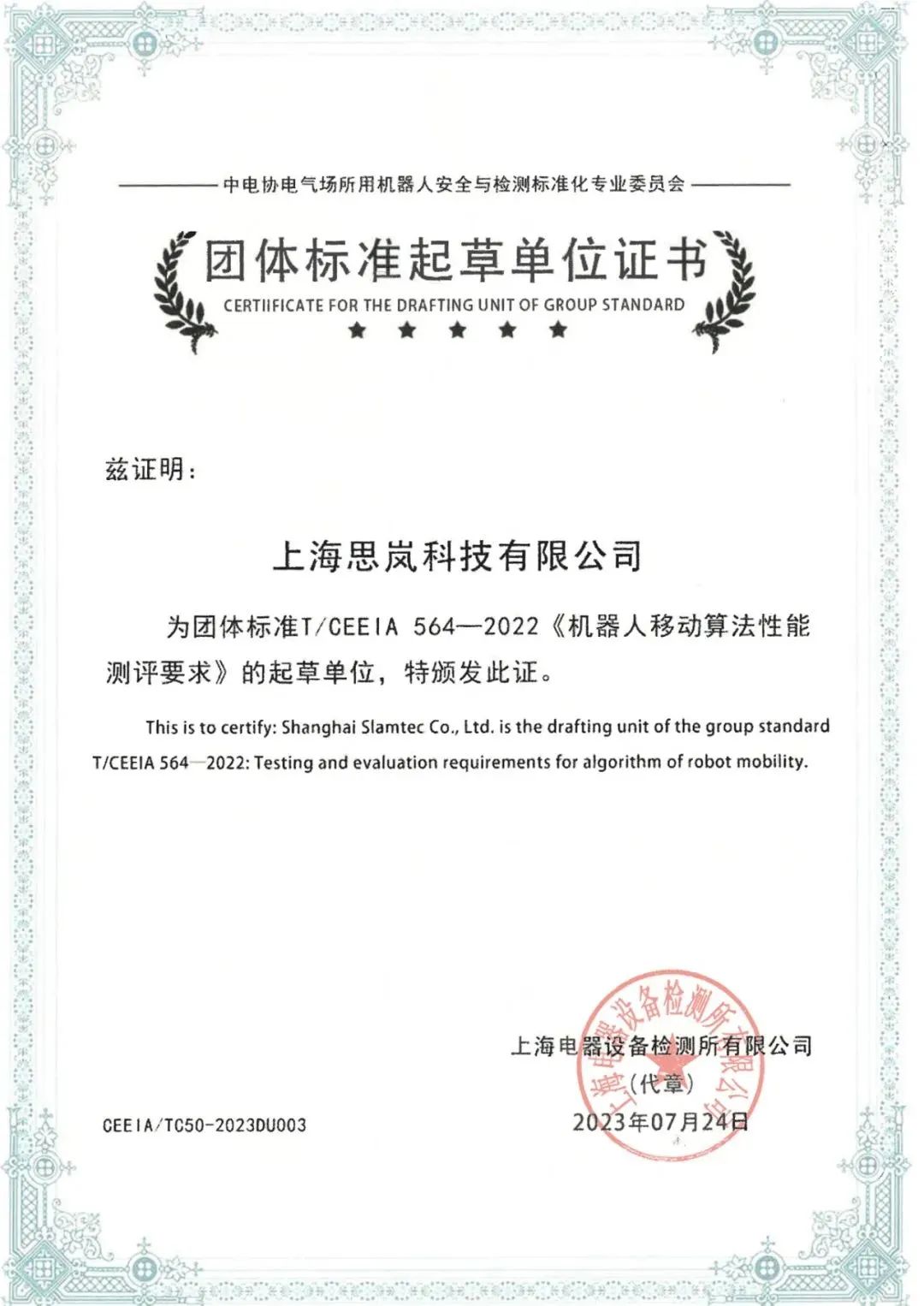 思岚一直以来积极参与并主导了多项机器人团体标准的起草和编制工作,其中包括机器人移动算法性能测评要求和机器人目标检测算法测评要求等关键标准。