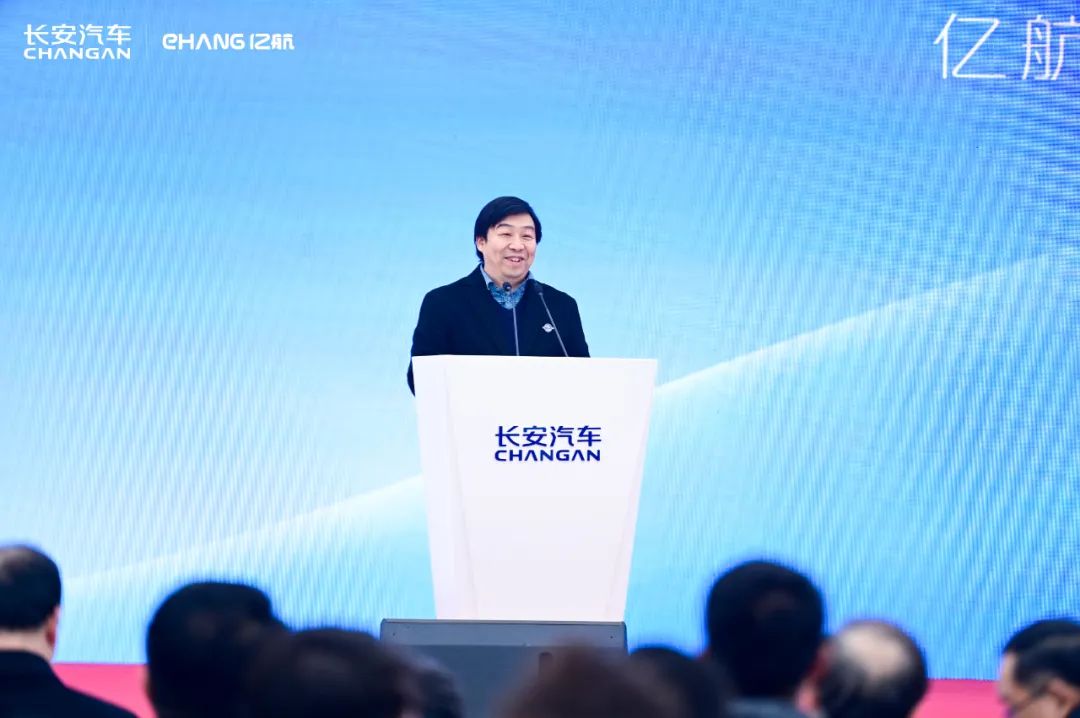 图:长安汽车董事长朱华荣在战略合作签约仪式现场讲话