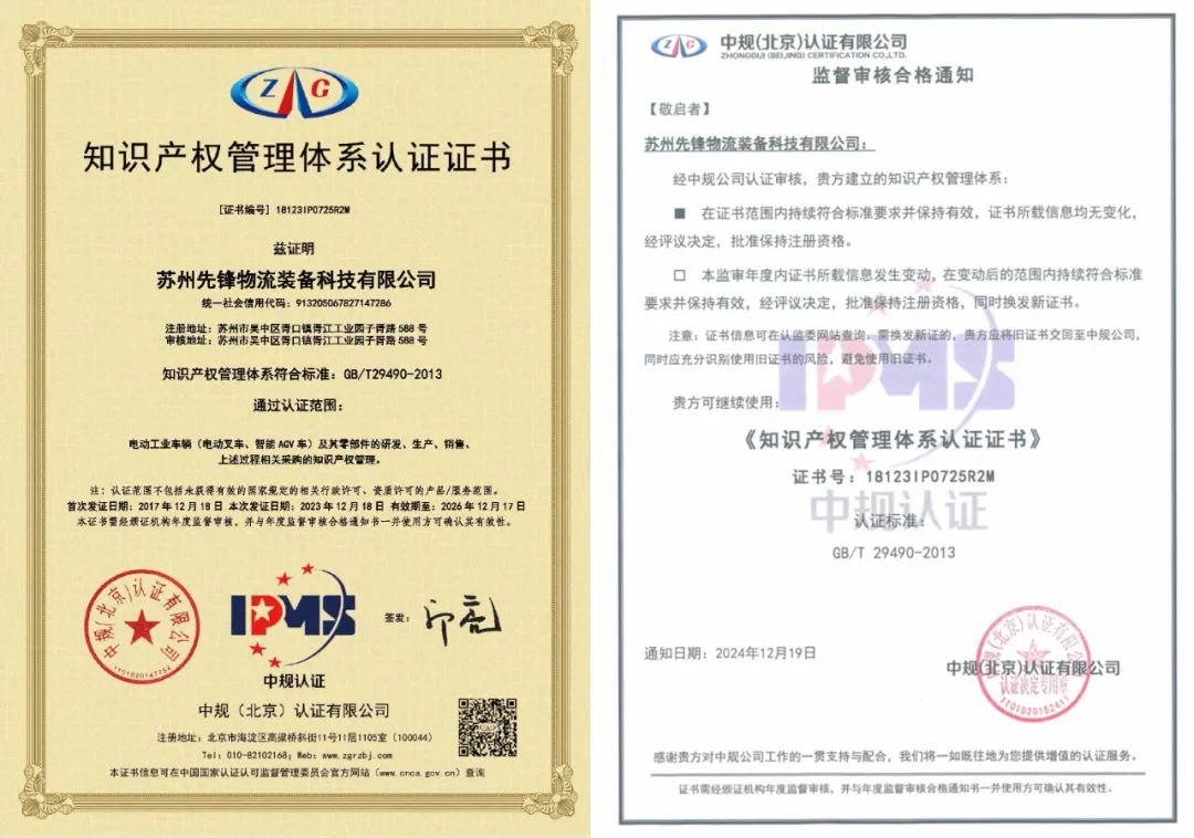 2017年,卓一智能叉车正式启动知识产权管理体系贯标认证工作。自首次认证以来,卓一智能叉车始终将知识产权管理作为企业发展运营的重要组成部分,并不断完善涵盖专利、商标、著作权等多维度的知识产权管理体系,不断提高知识产权创造、保护、运用和管理工作,确保创新研究成果能够顺利转化为实际生产力。
