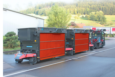 通过地理导航和全球导航卫星系统(GNSS)导航 拖拉机列车通过地理导航(等高线导航)在先前绘制的路线上进行导航。 户外应用还可选择通过全球导航卫星系统(GNSS)进行卫星导航。 全球导航卫星系统导航与地理导航相结合作为混合导航,特别适用于面积非常大、车辆几乎无法识别轮廓的工厂厂房。 全自动装载和卸载 自动化 "工厂列车 "牵引列车的装载过程也是全自动的。 货物运输车(拖车)配备了输送技术(辊道输送机)。 车辆以毫米级的精度停靠在源头或水槽处,内部辊筒式输送机在固定式输送技术的高度上定位,用于自动拾取货物(欧式托盘)或自动将货物(欧式托盘)运送到固定式输送线上。