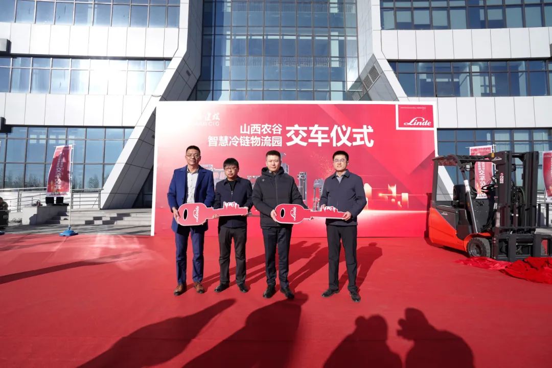 活动现场,林德叉车中北区域总经理徐国强、林德叉车中国区租赁及二手车业务总监陈辉清郑重地将叉车钥匙递交到山西农谷智慧冷链物流园代表的手中。这一刻,标志着林德共享叉车项目在山西农谷智慧冷链物流园正式落地,双方合作正式开启全新篇章。