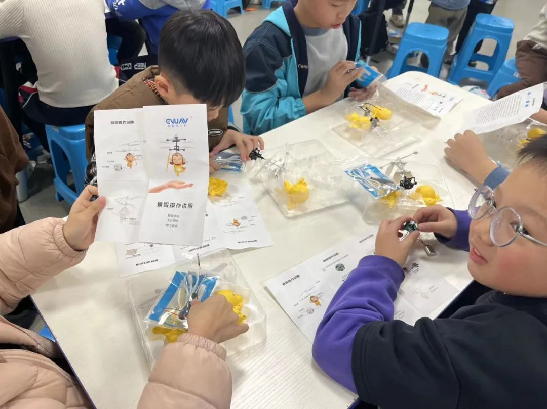 异能希望中国的每一个孩子都艰保持猴哥的天性,并且通过自己的努力学习掌握七十二变的能力,再解决人生中可能超过八十一难的阻碍,今日全体师生们迎来了一个特别的环节——猴哥飞行器组装初体验。猴哥飞行器,作为一种教育型无人机,以其简单易组装、操作安全的特点,成为了学生们实践动手能力的绝佳选择。在专业指导下,学生们分组合作,从零开始组装飞行器,从连接电池、安装螺旋桨到调试飞控,每一步都充满了探索的乐趣。