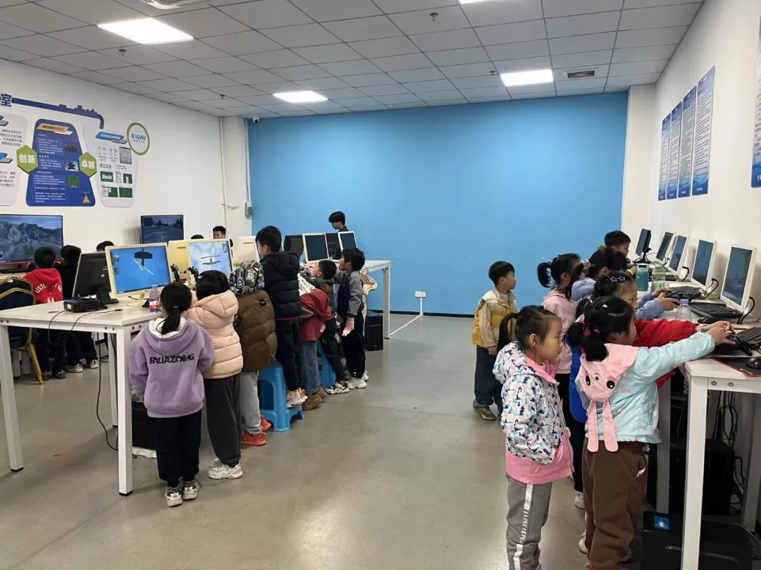 实操飞行室,在舒老师与金老师的指导下,学生们亲手操控无人机起飞、悬停、转向、降落,体验了一把“飞行员”的乐趣。实操不仅加深了对无人机操作技巧的理解,更激发了学生们对飞行技术的浓厚兴趣。