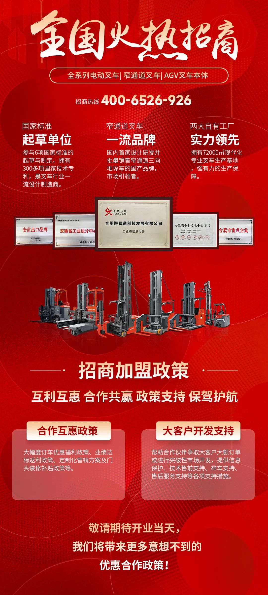 作为超窄通道电动叉车行业领军企业,合肥搬易通(MiMA米玛)凭借强大的技术实力和一站式服务体系,积极布局市场。值此苏州营销服务中心开业之际,现面向全国招募经销商,并推出重磅政策支持与开业钜惠活动,期待与您携手合作,共同开拓物流行业新蓝海!