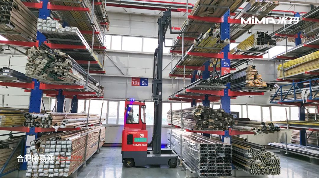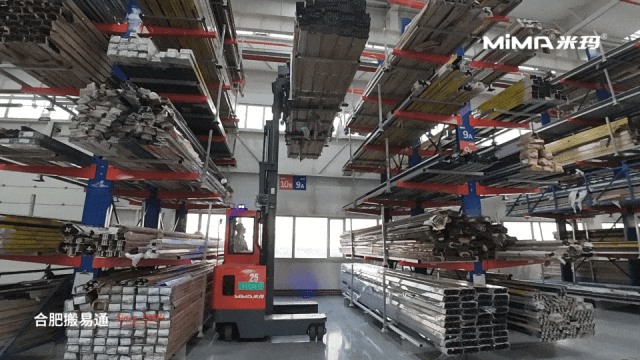 MiMA米玛MQC25额定载重2.5吨,起升高度可达8米,可与窄巷道货架配合实现门窗幕墙产品高位密集存储,有效解决了客户仓储空间不足的难题。