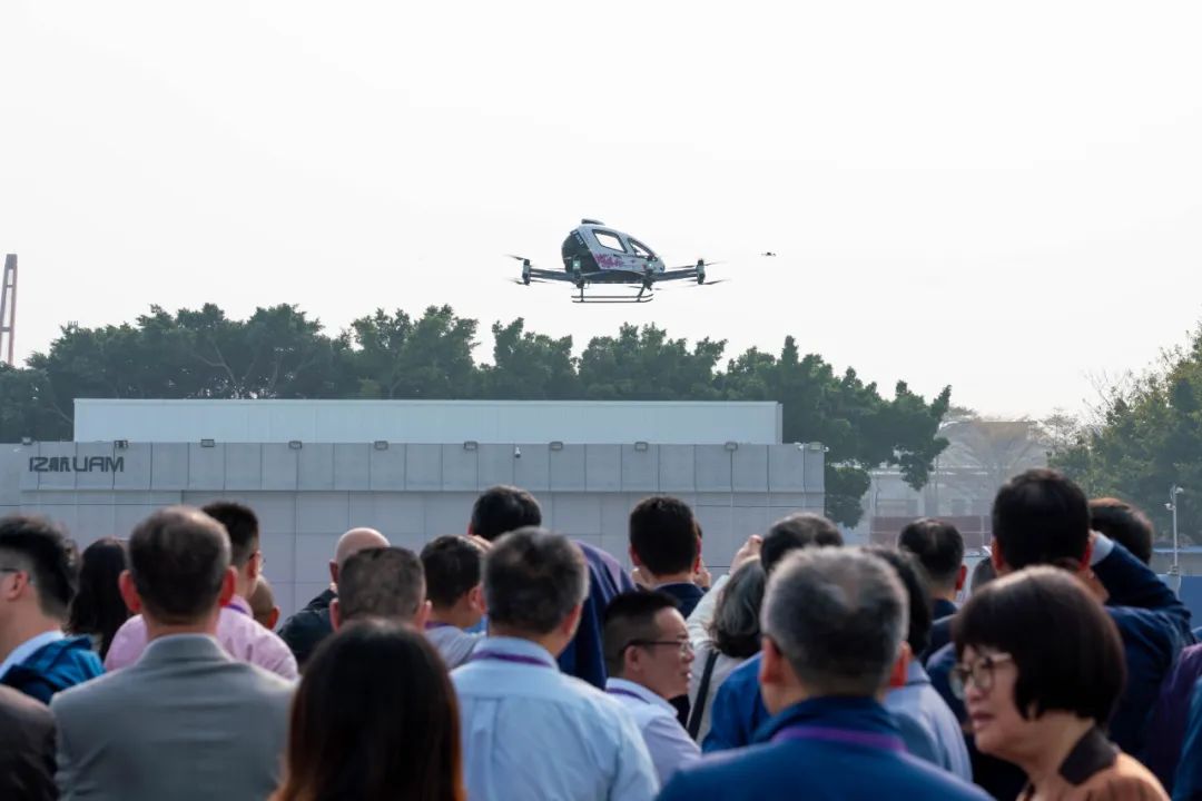 参会清华大学校友在广州亿航未来城观摩EH216-S无人驾驶载人航空器飞行,共同为中国低空经济点赞