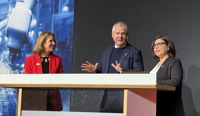 从左到右依次为:加拿大驻德国大使馆代办 Evelyne Coulombe、加拿大下一代制造业 (NGen) 首席执行官 Jayson Myers、加拿大政府 2025 年汉诺威工业博览会加拿大执行负责人 Christina Bilyk。