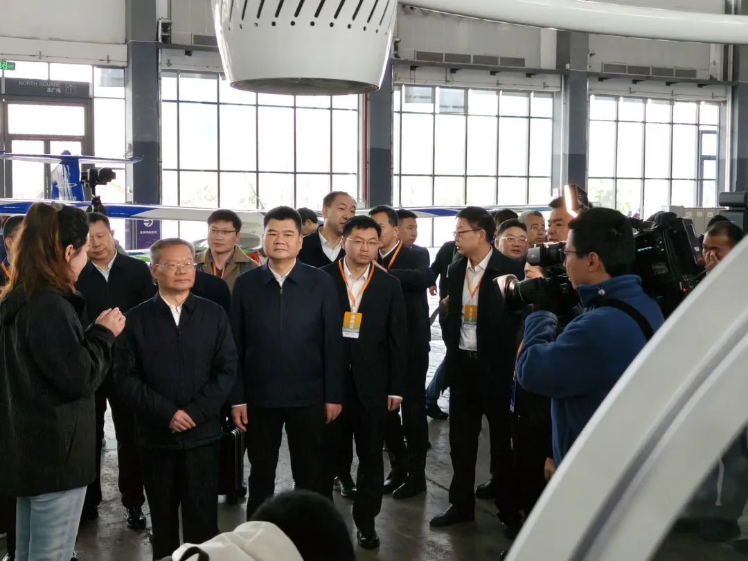 在航空航天产业专题展区,与会领导对零重力飞机工业展示的RX1E-A、ZG-ONE、ZG-T6缩比机等多款新能源航空器产品作重点考察。