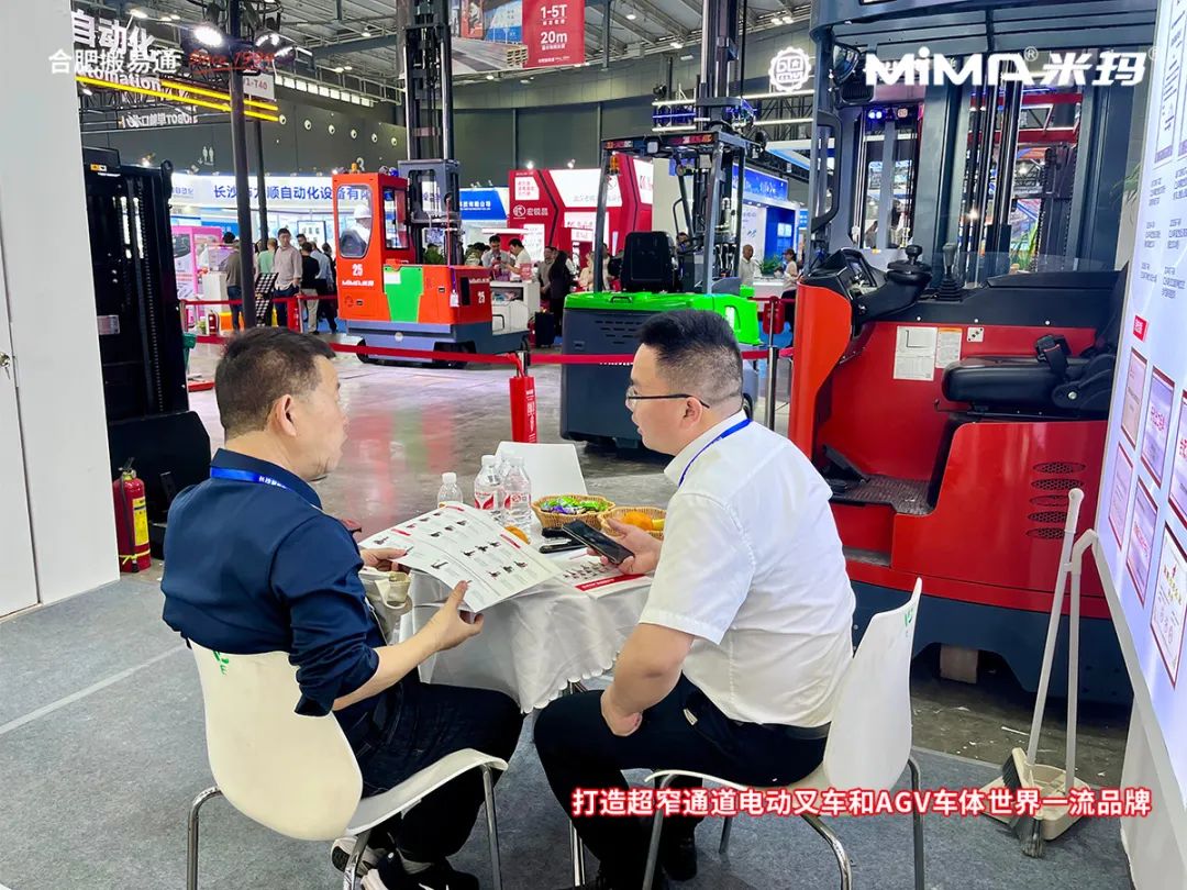 本次展会上,合肥搬易通(MiMA米玛)重点展示了多款针对高密度仓储和智能化物流的解决方案,包括超窄通道系列叉车、窄通道系列叉车及AGV无人叉车本体系列产品。