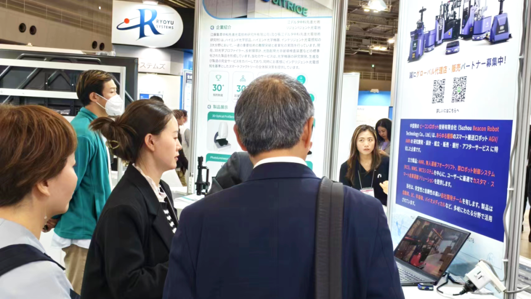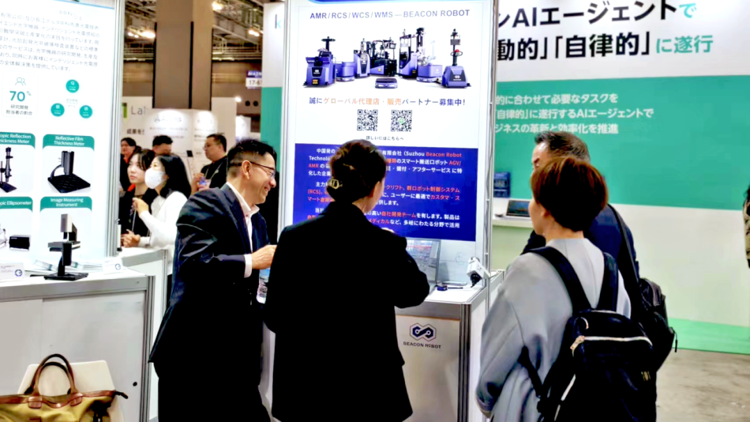 在日本AI EXPO TOKYO展会现场,寻迹智行的展位成为了人气焦点。来自日本本土以及全球多个国家和地区的观众对寻迹智行的搬运机器人、调度系统软件以及自研控制器表现出了浓厚的兴趣,寻迹智行出展成员代表针对产品的技术特点对不同的应用场景提供了相对应的解决方案。通过与现场观众的交流互动,寻迹智行不仅收获了很多国际市场的最新需求与趋势,也为公司的产品研发与市场拓展提供了重要的参考依据。