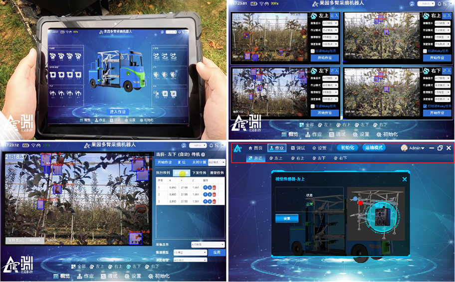 近年来,北京市农林科学院农业机器人实验室围绕现代标准果园、设施农业及城市园林绿化等产业重大需求,系统开展了农业智能装备研发与技术集成创新。针对园艺生产场景中自主作业的技术瓶颈,实验室构建了多模态智能感知与决策体系,通过人工智能算法模型、边缘计算架构与三维点云传感技术的深度集成优化,相继研发出多自由度苹果协同采摘机器人、番茄整枝/采收机器人、温室物流-巡检复合机器人及果园精准变量施药机器人等系列装备。团队基于目标检测与语义分割的多任务深度模型,创制了全天候作物识别定位系统,并已成功应用于苹果、番茄、柑橘、猕猴桃等典型园艺作物的复杂田间环境感知任务,在枝叶遮挡、光照变异等挑战性场景下实现高精度定位。