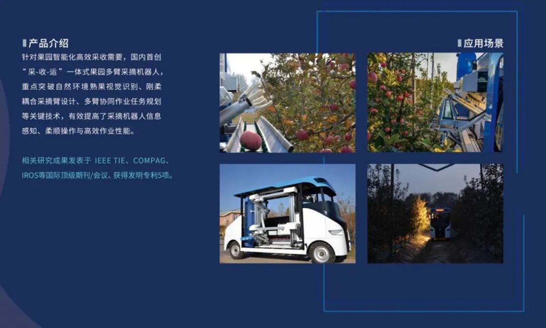 研究成果已通过北京市新技术新产品(服务)认证3项,获授权国家发明专利10项,相关成果发表于《IEEE Transactions on Industrial Electronics》《Computers and Electronics in Agriculture》等机器人领域顶级期刊及IROS等国际会议,形成完整知识产权体系。研发的果园采摘机器人作为2023世界机器人大会首发创新产品,斩获“创投之星”机器人产融合作示范项目、中国农业机器人创新大赛国家级一等奖等殊荣,技术成果获CCTV《新闻联播》、新华社专题报道及CGTN全球传播。值得关注的是,农业农村部韩俊部长在2025年2月《求是》杂志发表的署名文章中,肯定了该团队自主研发的苹果采摘机器人在提高我国农机装备水平、推动农业高质量发展做出的积极贡献。