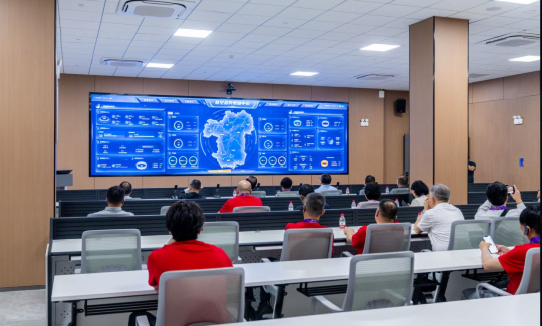在指挥中心,工作人员向考察团成员详细介绍了东湖高新区低空共享无人机项目的建设运行情况及应用成效,向嘉宾们展示了无人机技术在城市低空治理领域的创新实践。项目作为全国首个“空天地一体化智慧城市”样板工程,由186架各类型无人机、128套自动机库构成,覆盖了全区518平方公里低空空域,这支“天空护卫队”正在重塑光谷的城市治理模式。