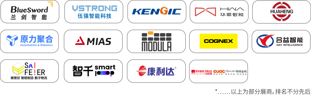 兰剑智能、伍强智能科技、科捷智能、华章智能、华恒机器人、原力聚合(重庆)机器人、米亚斯、摩登纳、康耐视、合益智能、赛斐迩、智千智能、康利达、研祥金码……